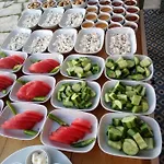 Dimineața este servit un mic dejun vegetarian. Puteți lua masa la Fava, care servește mâncăruri sănătoasă, sau la Deniz Pide Alacati, situat la doar o plimbare de 6 minute.